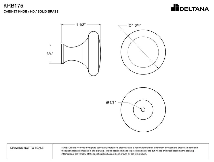The Deltana KRB175 is a Round Traditional Heavy Duty Knob with a more notorious profile. It is available in an array of fine finishes.