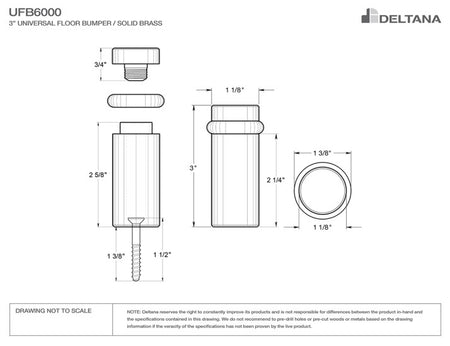 Deltana UFB6000  Round Universal Floor Bumper 3", Solid Brass