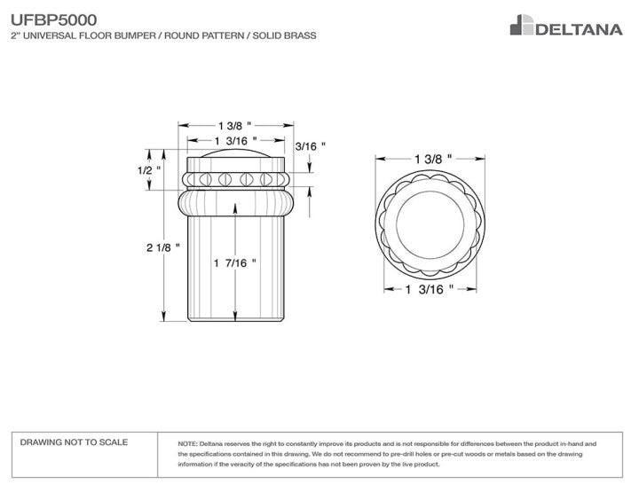 Deltana UFBP5000 Round Universal Floor Bumper Pattern Cap 2-1/8", Solid Brass