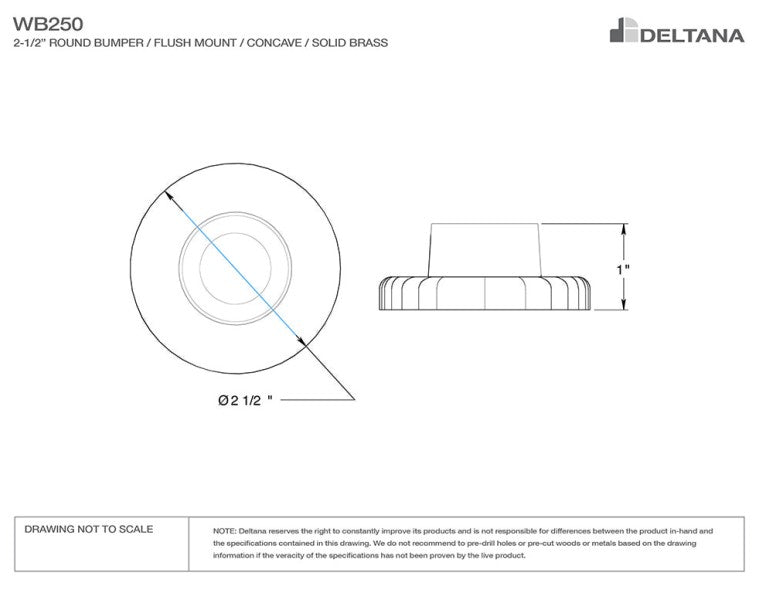 Deltana WB250 Wall Mount Concave Flush Bumper, 2-1/2" Diameter