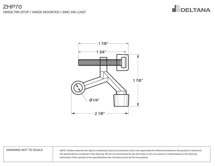 Deltana ZHP70 Hinge Pin Stop for Steel Hinges, Hinge Mounted, Zinc Die-Cast