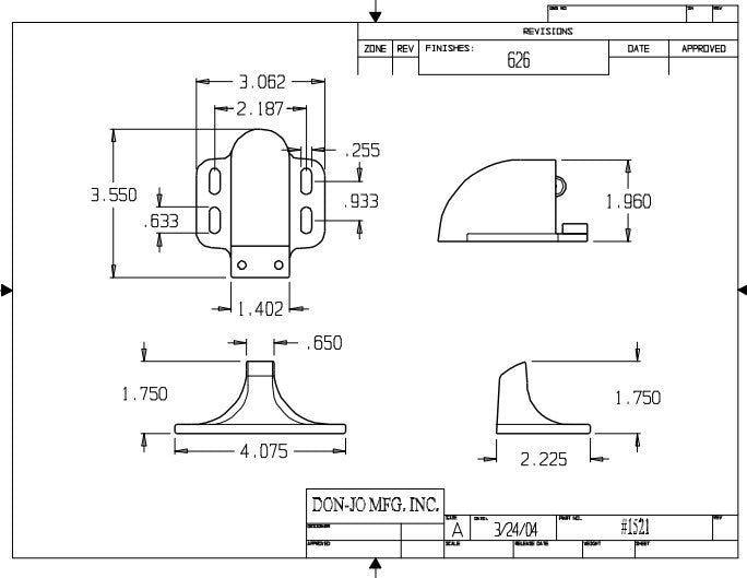 DON-JO 1521 Door Holder in Satin Chrome, 3" W x 3 1/2" H, Cast Brass Material