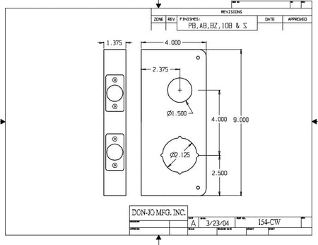 DON-JO 154 CW Wrap Around 4" x 9", 4" CTC, for Double Lock Combination