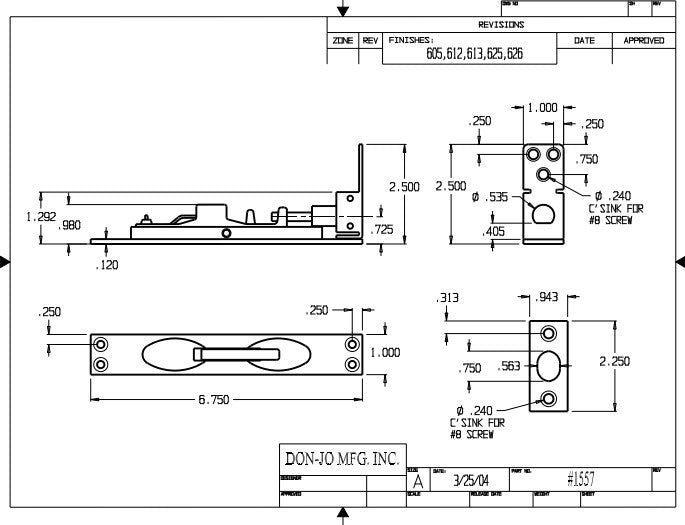 DON-JO 1557 Flush Bolt, 6-3/4" x 1", Cast Brass Material