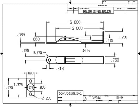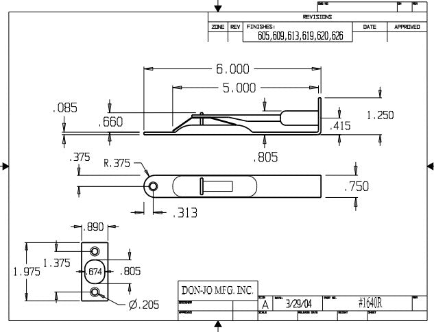 DON-JO 1640R Flush Bolt, 6" X 3/4", Cast Brass Material