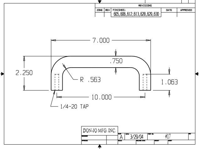 DON-JO 17 Door Pull, Cast, 10" CTC, 10-3/4" Overall, 2-1/4" Projection, 1-1/2" Clearance