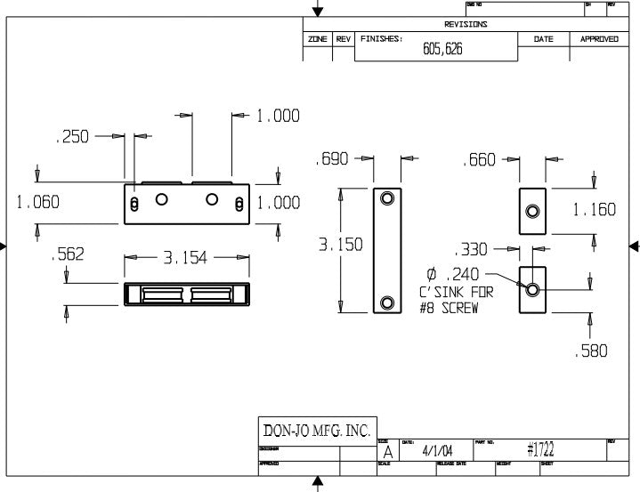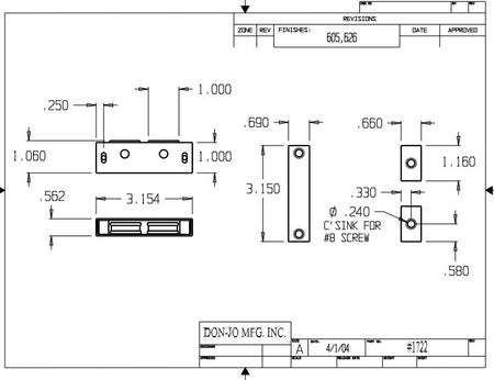 DON-JO 1722 Magnetic Catches, 3-1/8" Length, 9 lbs. Load Capacity, Brass