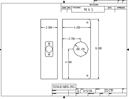 DON-JO 212 CW Wrap Around 4-1/4" x 9", 2-1/2" Door Size, 2-3/4" Backset