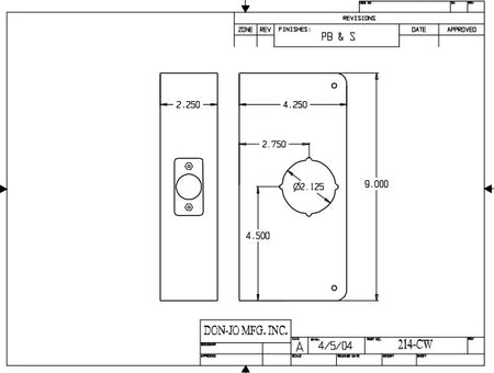 DON-JO 214 CW, 4-1/4" x 9", 2-1/4" Door Size, 2-3/4" Backset