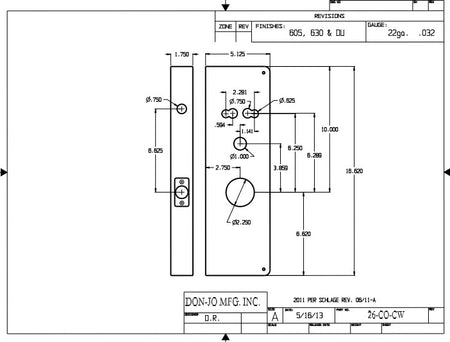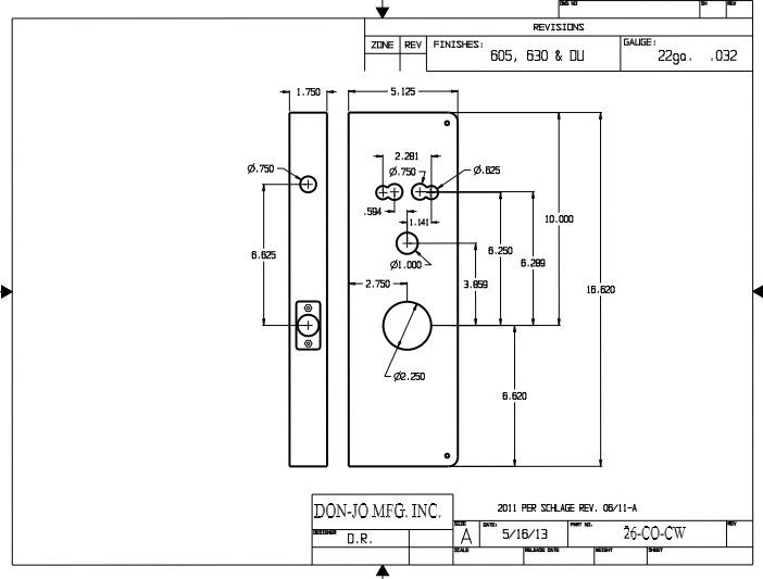 DON-JO 26CO CW Wrap Around 5-1/8"x16-5/8", works with Schlage CO Locksets