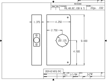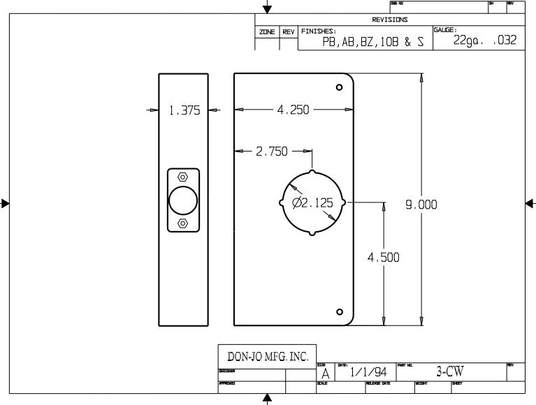 DON-JO 3 CW Wrap Around For 1-3/8" Door Size, 2-3/4" Backset