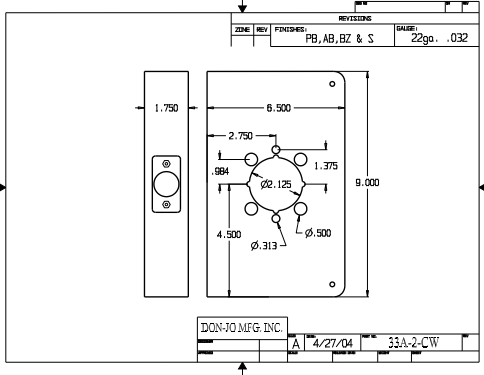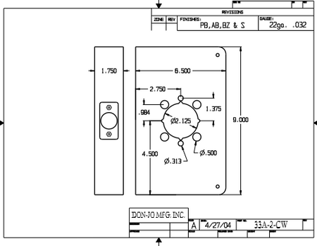 DON-JO 33A 2 CW Wrap Around 6-1/2" x 9", 1-3/4" Door Size