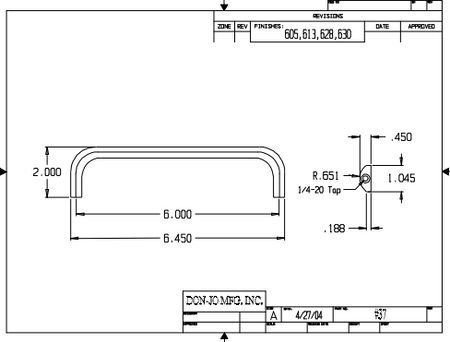 DON-JO 37 Door Pull, Cast, 6" CTC, 6-1/2" Overall, 2" Projection, 1-1/2" Clearance