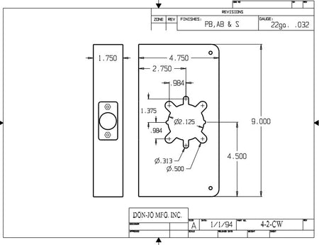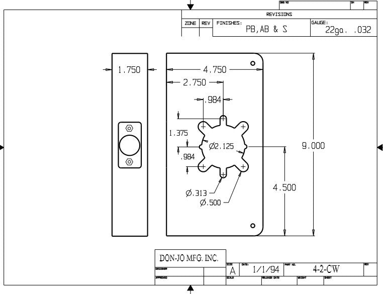 DON-JO 4 2 CW Wrap Around For 1-3/4" Door Size, 2-3/4" Backset