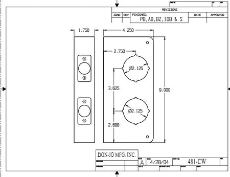 DON-JO 481 CW Wrap Around 4-1/4" x 9", 2-3/4" Backset, 1-3/4" Door Size