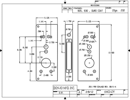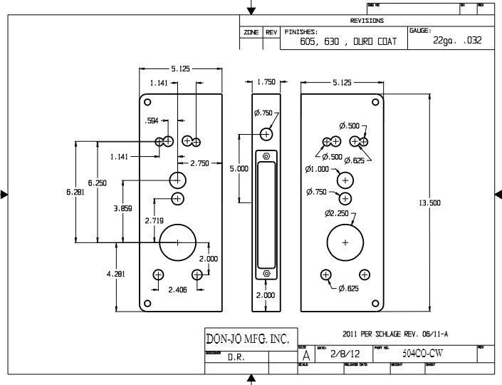 DON-JO 504CO CW Wrap Around 5-1/8" x 16-3/8", 2-3/4" Backset, 1-3/4" Door Size