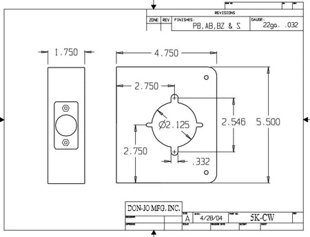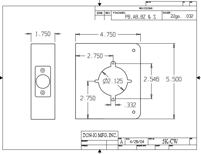 DON-JO 5K CW Wrap Around For 1-3/4" Door Size, 2-3/4" Backset