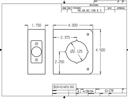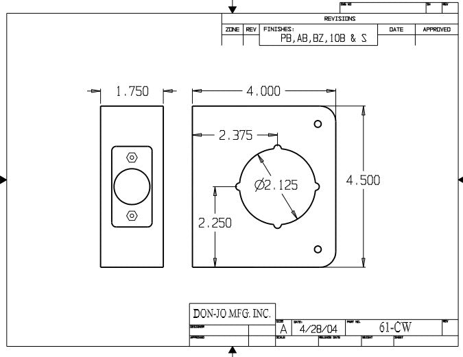DON-JO 61 CW Wrap Around 4" x 4-1/2", 2-3/8" Backset, 1-3/4" Door Size