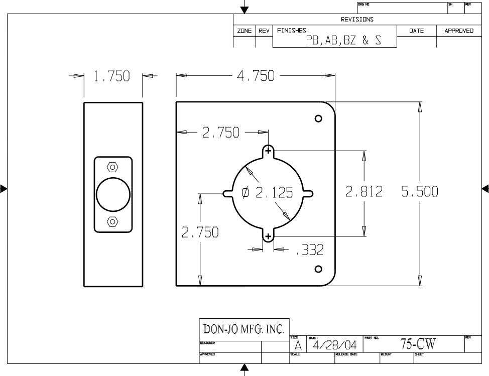 DON-JO 75 CW Wrap Around 4-3/4" x 5-1/2", Works with Marks levers
