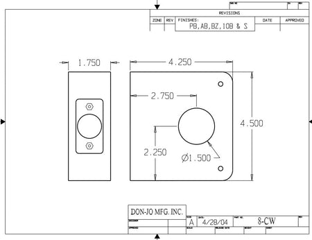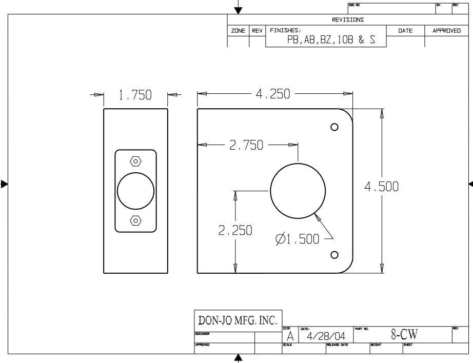 DON-JO 8 CW Wrap Around 4-1/4" x 4-1/2" w/ 2-3/4" Backset, 1-3/4" Door Size