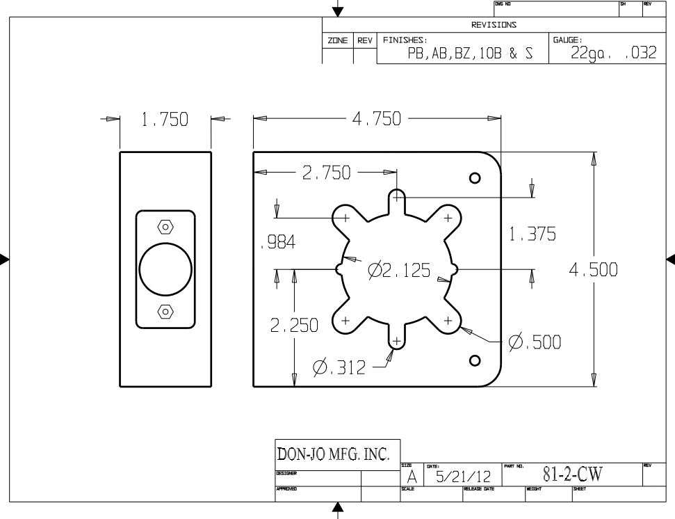 DON-JO 81 2 CW Wrap Around 4-3/4" x 4-1/2", 2-3/4" Backset, 1-3/4" Door Size