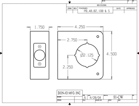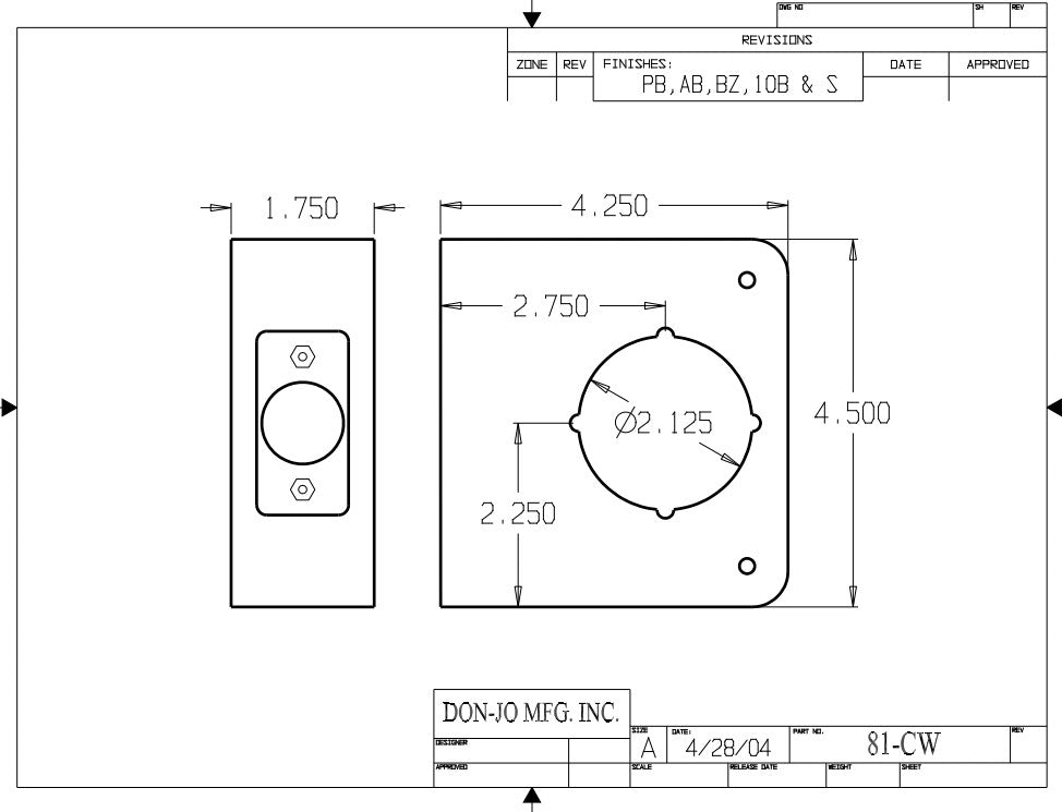 DON-JO 81 CW Wrap Around 4-1/4" x 4-1/2", 2-3/4" Backset, 1-3/4" Door Size