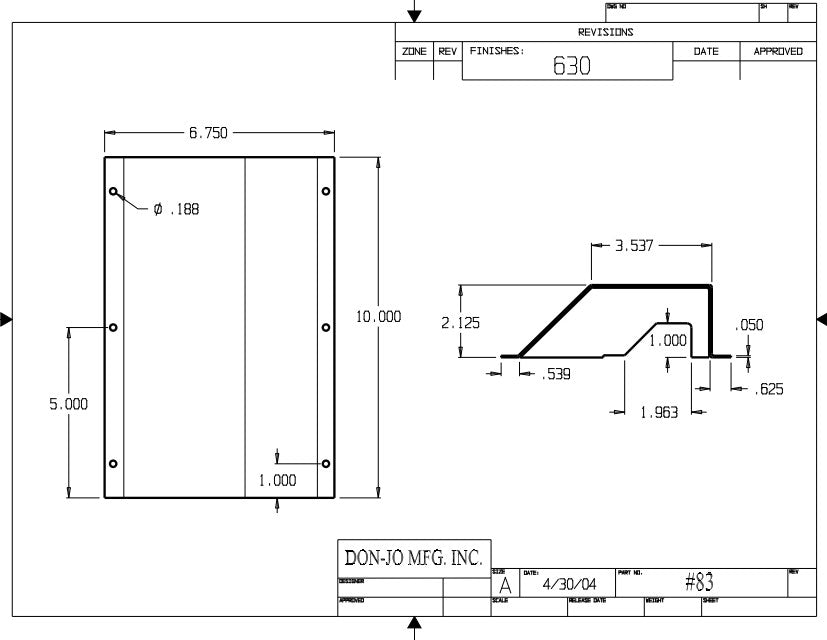 DON-JO 83 Latch Bolt Cover, 6 3/4"x 10", Left Hand, Satin Stainless Steel Finish