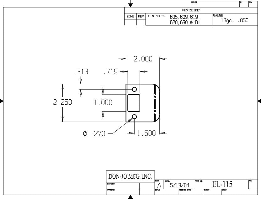 DON-JO 9115 Extended Lip Strike, 2 1/4" x 1 1/2", Radius Corner