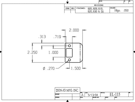 - Finishes: DU, 605, 609, 619, 622, 629, 630