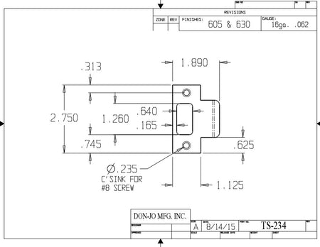 DON-JO 9234 T Strike, 2 3/4" x 1 1/8"