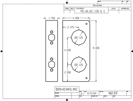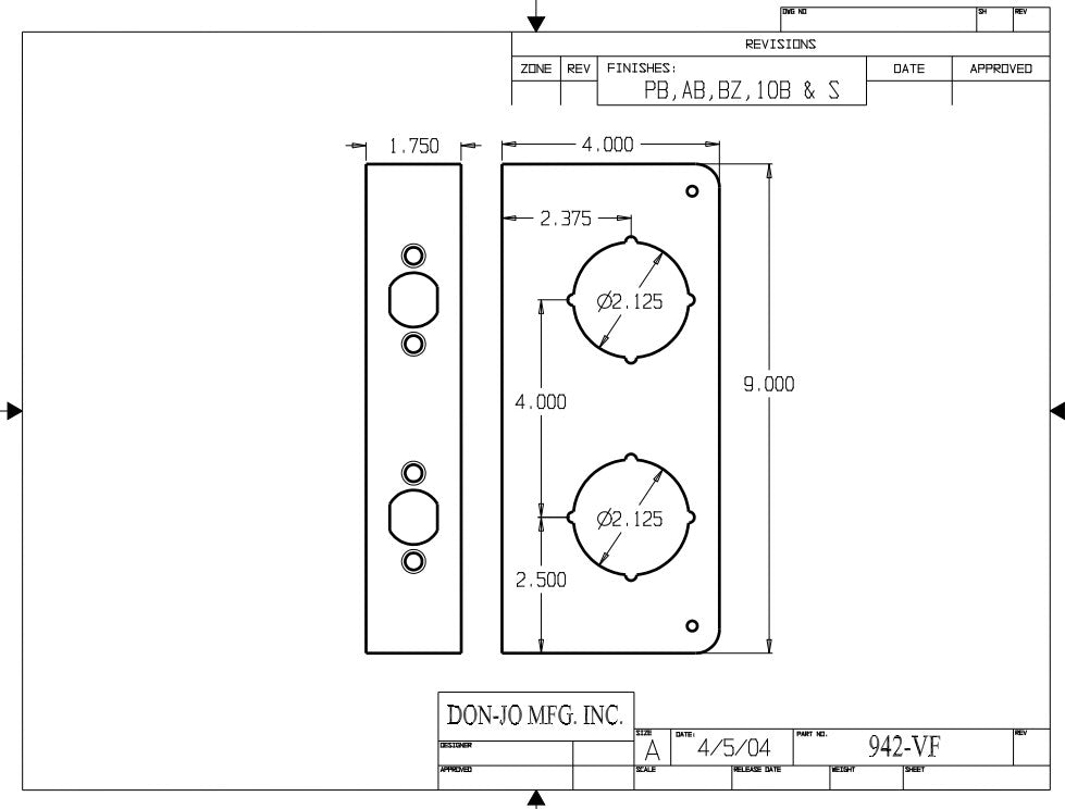 - Type: For double lock combinations with 2-1/8" holes with 4" centers, Flat front design