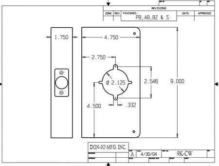 DON-JO 9K CW Wrap Around 4-3/4" x 9", Level Prep