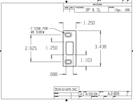 DON-JO A 2 SDS Adjustable Strike for Deadbolt, 1 1/4" x 3 3/8", Ferrous Material