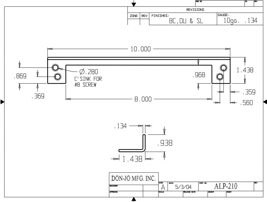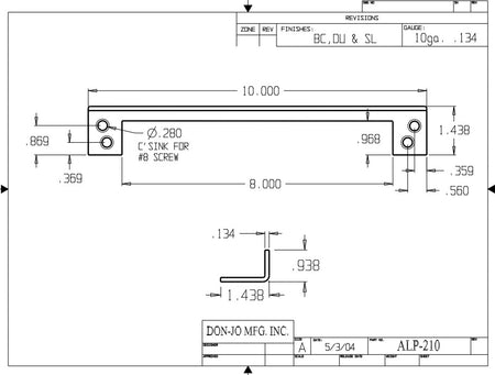 DON-JO ALP 210 Angle Type for Outswing Doors, 1 1/2" x 10" Steel Material