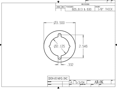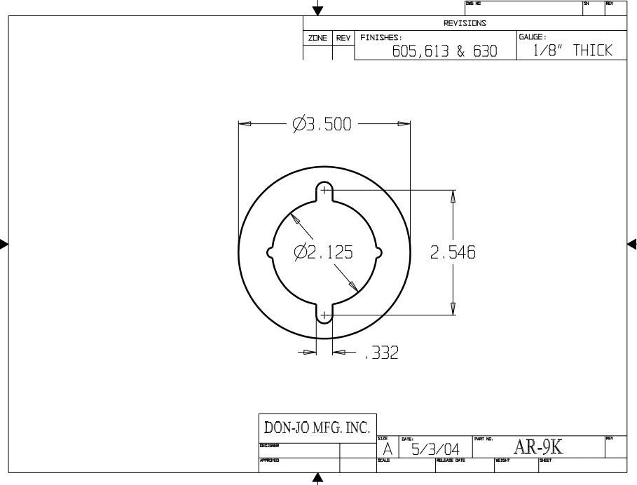 DON-JO AR 9K Conversion Plate, 3-1/2" Diameter, Aluminum Material