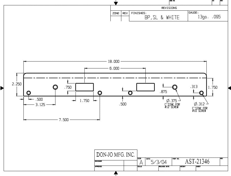 DON-JO AST 21346 Security Strike, 18" x 1 3/4", Double Hole