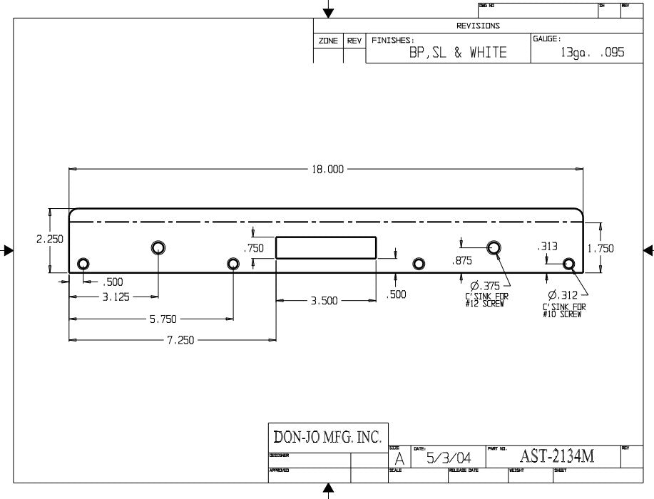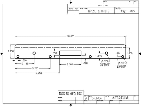 DON-JO AST 2134M Security Strike, 18" x 1 3/4", Mortise Hole