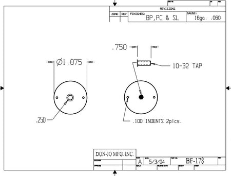 DON-JO BF 178 Hole Filler Plate 1-7/8" Diameter, Steel Material