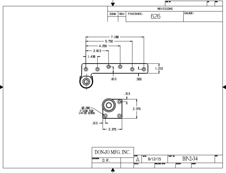 DON-JO BP 2 34 Bottom Pivot 8-7/16" x 1-3/16", 3/4" Offset