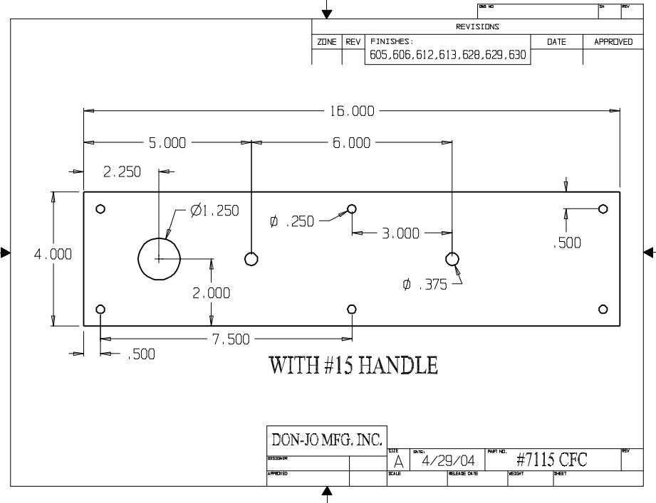 - Finishes: 605, 606, 612, 613, 628, 629, 630