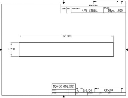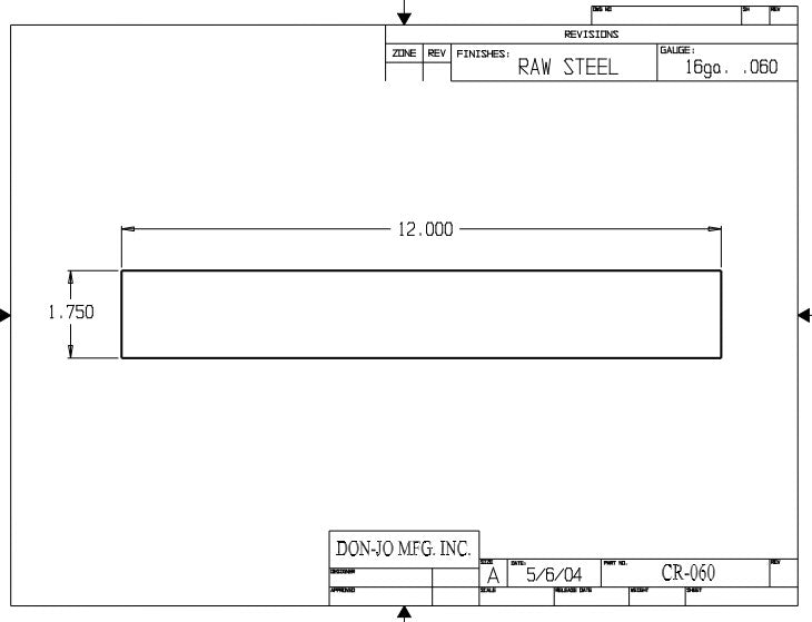 DON-JO CR 060 Closer Reinforcement, 12" x 1-3/4", Steel Material