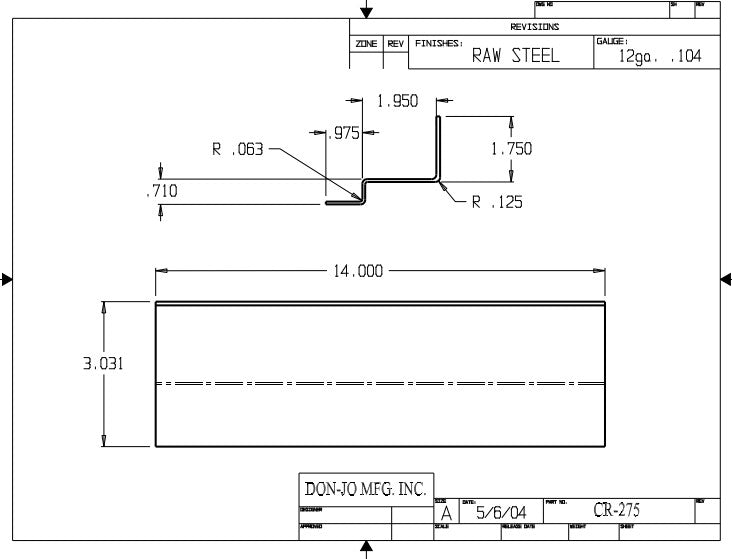 DON-JO CR 275 Closer Reinforcement, 14" x 4-1/8", Steel Material