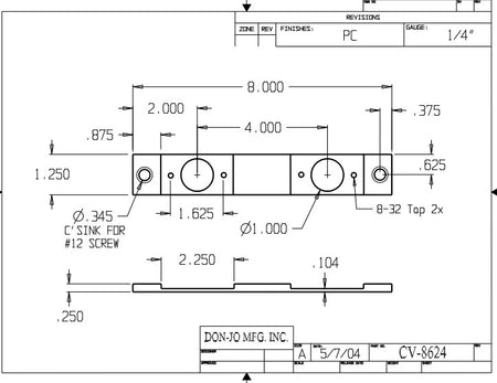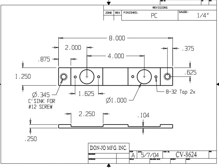 DON-JO CV 8624 Conversion Plate, 8" x 1-1/4", Steel Material, Prime Coated