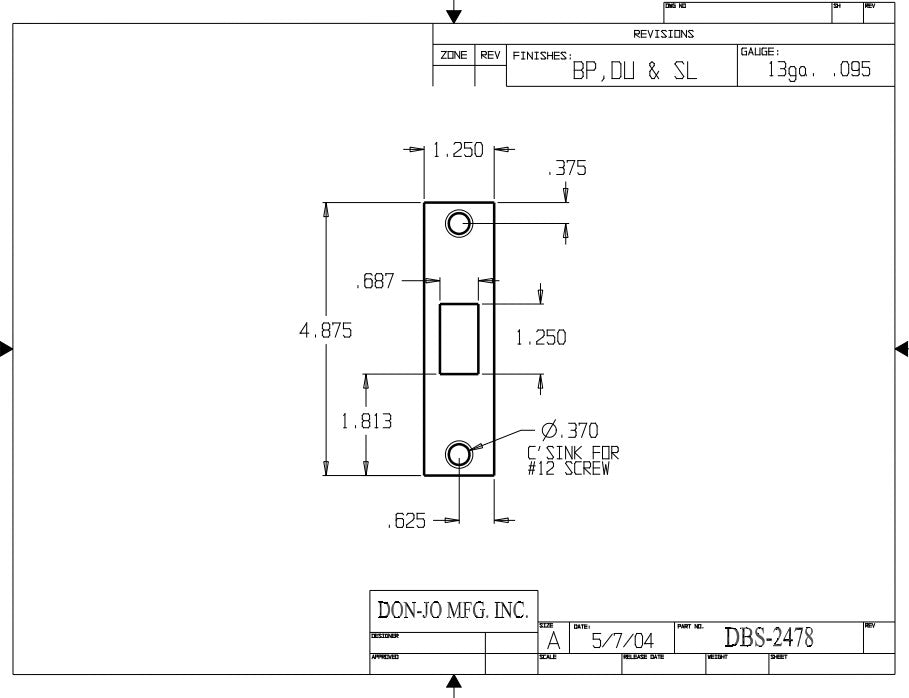 DON-JO DBS 2478 ANSI Strike for Deadbolt, 4-7/8" x 1-1/4", 1 Latch Hole