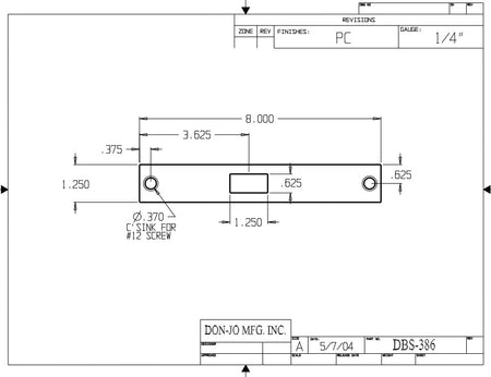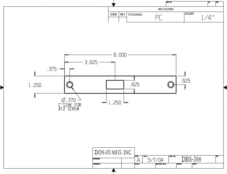 DON-JO DBS 386 Conversion Plate, 8" x 1-1/4", Aluminum Material, Prime Coated