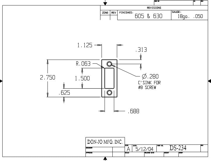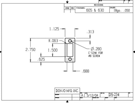 DON-JO DBS DS-234 Deadlock Strike, 2-3/4" Height, 1-1/8" Width, 1 Hole, 630 Satin Stainless Steel