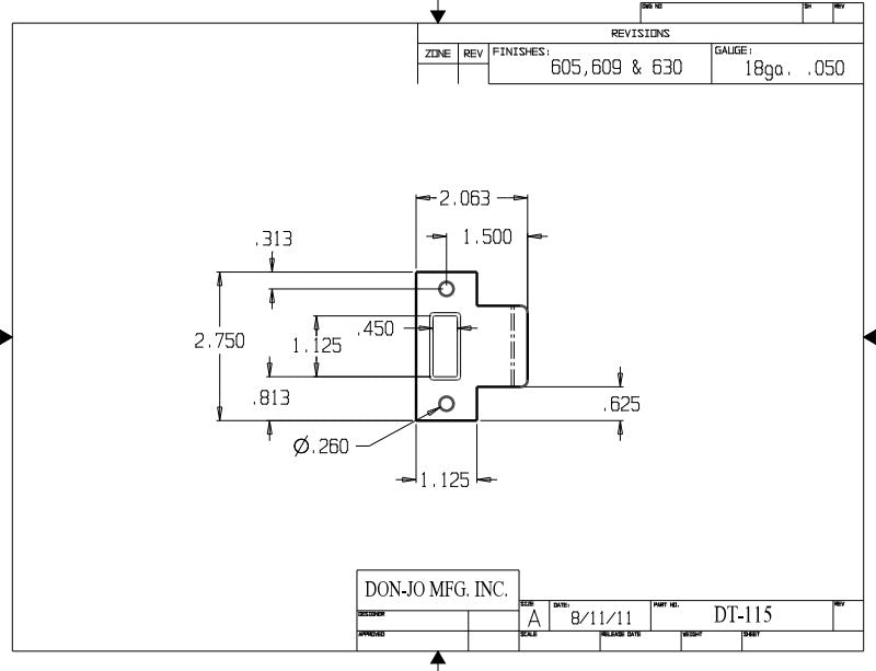 DON-JO DT9115 Extended Lip Dimple T-Strike, 2 3/4" x 1 1/2"