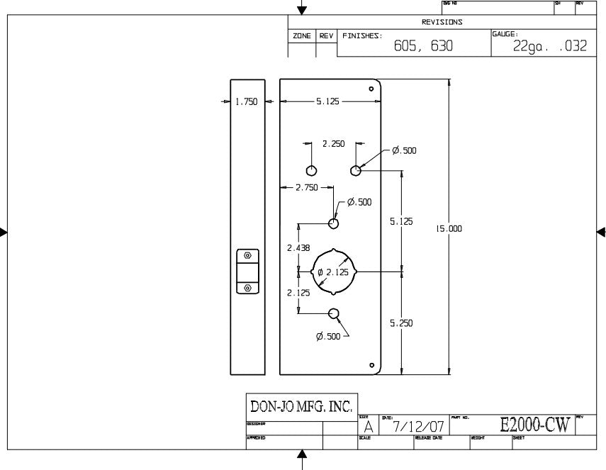 DON-JO E2000 CW Wrap Around 5-1/8" x 15", 2-3/4" Backset, 1-3/4" Door Size