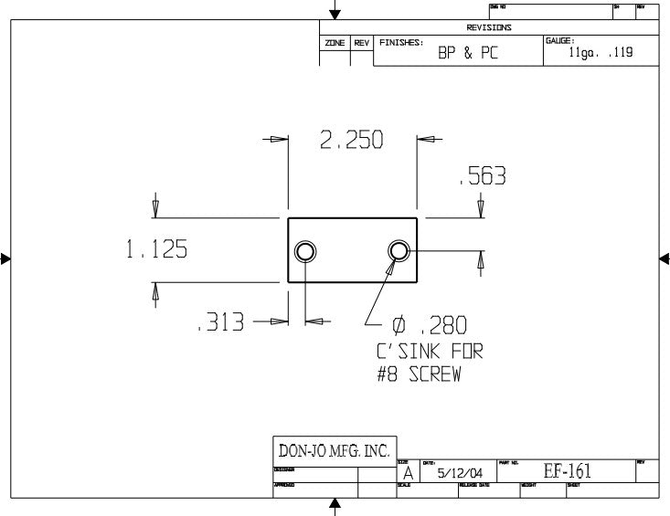 DON-JO EF 161 Latch Filler Plate 2-1/4"x 1-1/8", Steel Material, Prime Coated