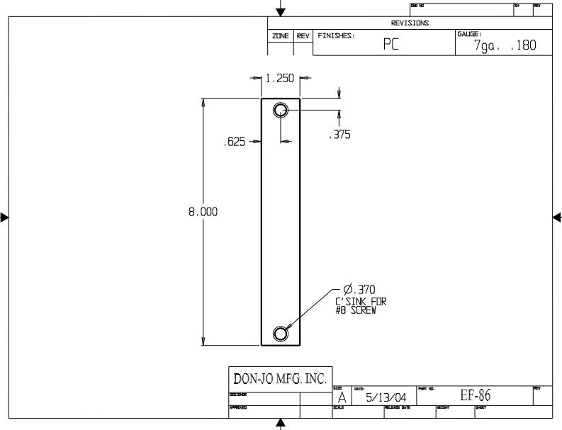 DON-JO EF 86 Mortise Edge Filler 8"x 1-1/4", Steel Material